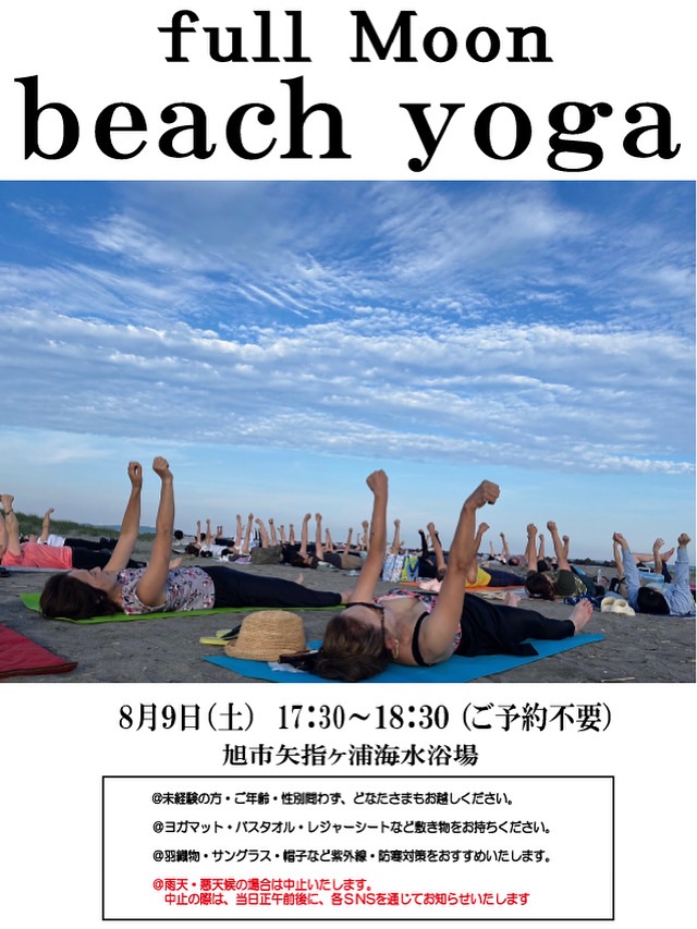 【無料イベント】満月と夕陽のビーチヨガ\お知らせ/千葉県旭市矢指ケ浦海水浴場