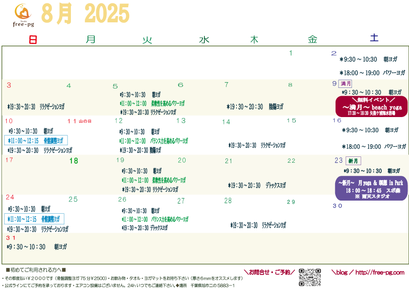 8月スタジオスケジュール
